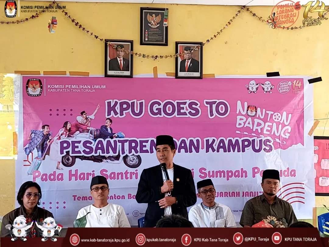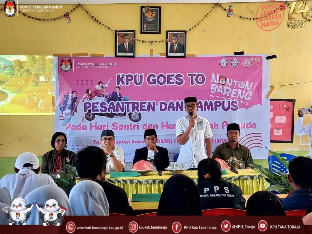 Kaduaja (Al-Hidayah News). Komisi Pemilihan Umum Daerah (KPUD) Tana Toraja dalam rangka memperingati Hari Santri 2023 gelar nobar film pemilu Kejarlah Janji pada Minggu (22/10/2023) di Pondok Pesantren Al-Hidayah Kaduaja. Kegiatan nobar dilaksanakan di 38 provinsi di 448 pesantren dan 6 seminari dengan jumlah peserta nobar mencapai 99.970 orang.