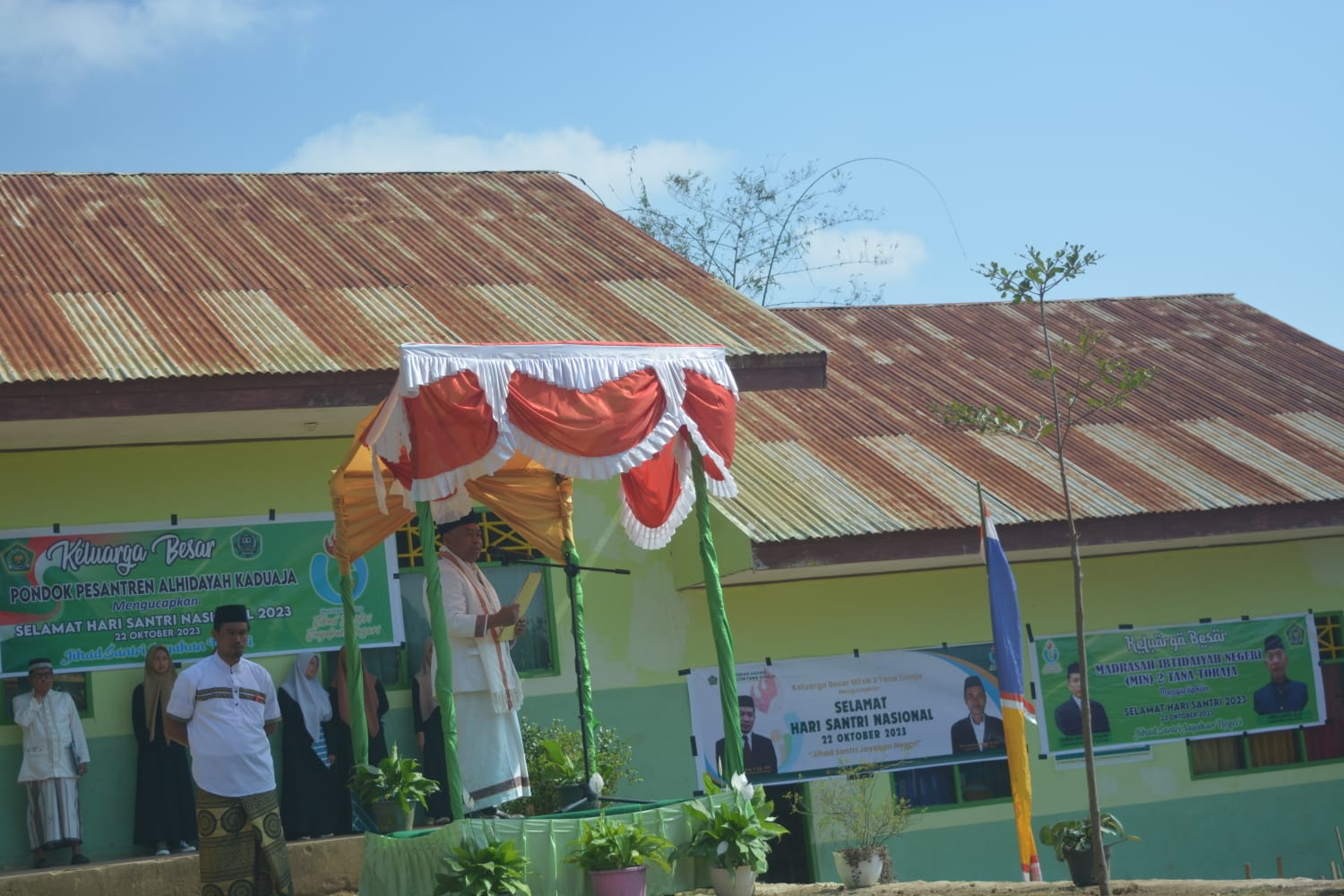 Setelah rombongan pawai sudah masuk lokasi PP Al-Hidayah, Upacara Perayaan Hari Santripun segera dilaksanakan, dan yang mengambil bagian selaku MC (Nurhabibah), Pembina Upacara (Ustad Sudirman), Pemimpin Upacara (Suleman Kenjeng), Nur Hikma Dalle (Teks UUD 1945), Sa’dia (Ikrar Santri), Ustad Dahir B. Tahir (Doa), Ivha Aprilia (Naskah Resolusi).